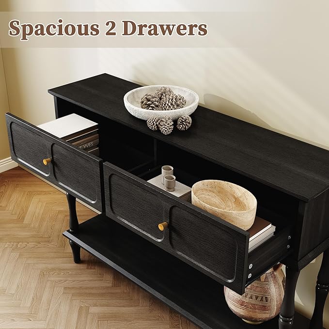 - 【2 Drawers & Open Shelf】This entry table comes with 2 spacious drawers with storage, providing ample storage space for your belongings. And the bottom shelf is perfect for placing storage baskets or taller display items as additional storage