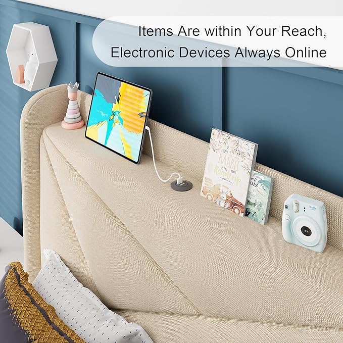 - Fully Charged Anytime – Stay powered without leaving your bed. The built-in 20W PD Type-C & USB-A charging ports easily power your phones, tablets, lamps, and humidifiers. Enjoy convenient bedside charging with no extra outlet needed