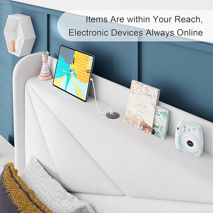 - Fully Charged Anytime – Stay powered without leaving your bed. The built-in 20W PD Type-C & USB-A charging ports easily power your phones, tablets, lamps, and humidifiers. Enjoy convenient bedside charging with no extra outlet needed