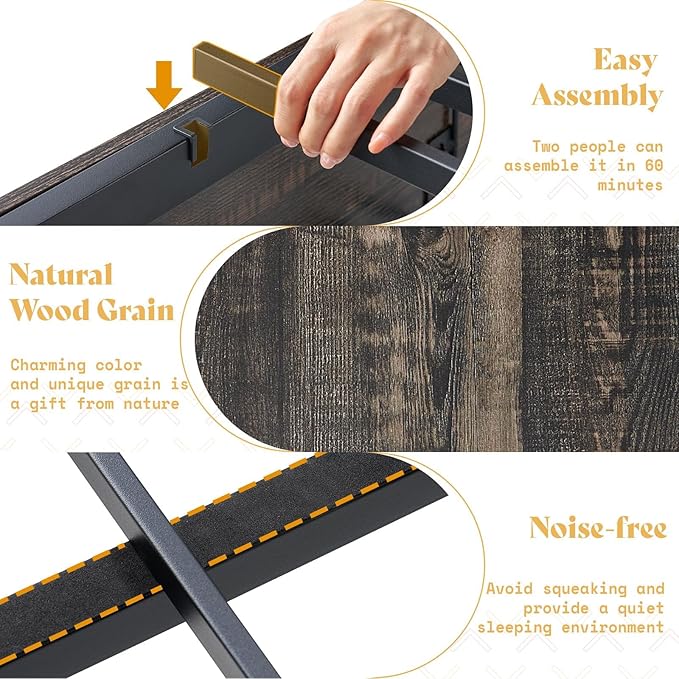 - 【Farmhouse & Rustic Style】Platform bed features a natural wood grain finish and barn headboard, charming classic farmhouse element that brings a rustic and vintage aesthetic to your room and matches any home style