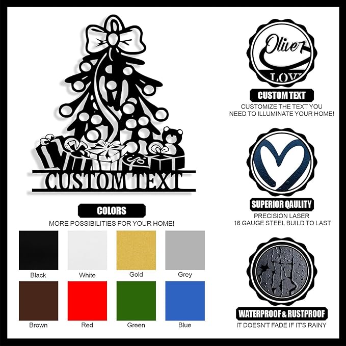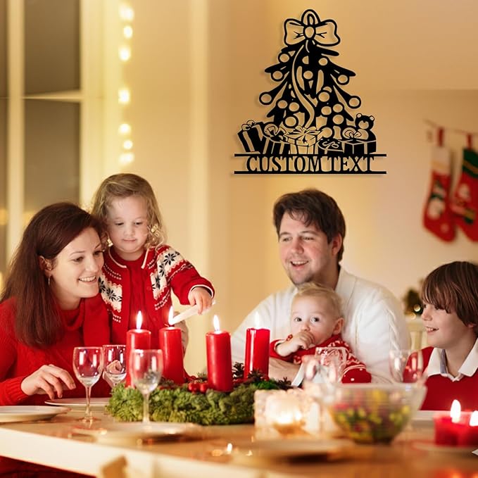 - Personalized Christmas Tree Metal Sign - Click "CUSTOMIZE NOW" and enter the last name, text, established date on the custom metal sign. Adds a Christmas holiday atmosphere to your home door, living room, portch wall decor.