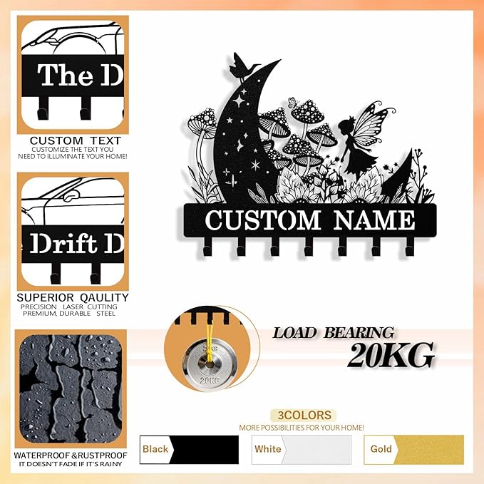 - Personalized Key Holder - Click “Customize Now” and enter your desired name or text to create a truly unique and personalized piece. This fairy key holder wall mount is not only practical but also serves as a distinctive home décor item, showcasing your personal style