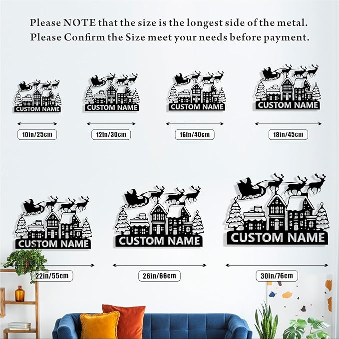 - Personalized Christmas Metal Sign - Click "CUSTOMIZE NOW" and enter the last name, text, established date on the custom metal sign. Adds a Christmas holiday atmosphere to your home door, living room, portch wall decor.