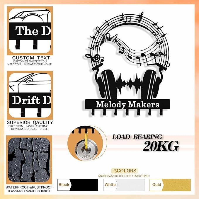 - Personalized Key Holder - Click “Customize Now” and enter your desired name or text to create a truly unique and personalized piece. This music key holder wall mount is not only practical but also serves as a distinctive home décor item, showcasing your personal style