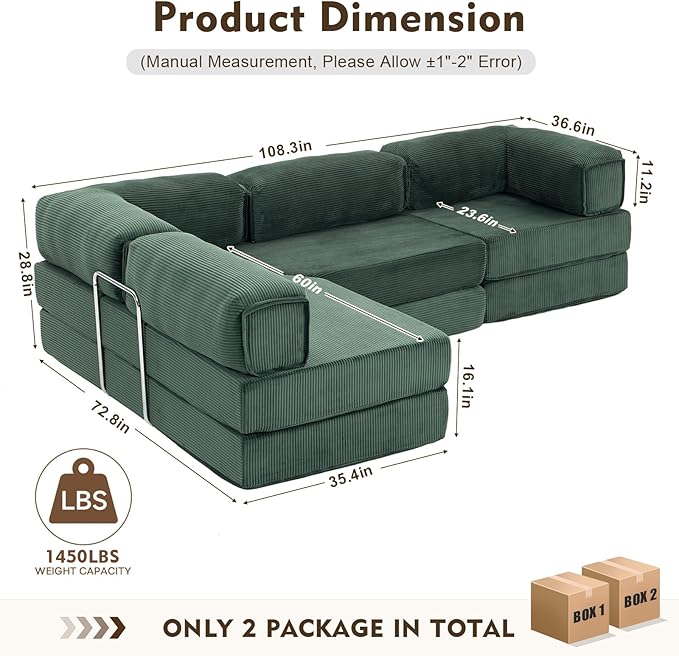 - [No Assembly Required] Your modular sofa with chaise arrives vacuum-packed. Simply unbox, gently pat it to restore its shape, and arrange the modules. Say goodbye to complicated setup to get instant comfort with this easy-to-use cloud sofa