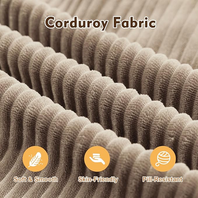 - [Soft Corduroy] Featuring with a smooth, skin-friendly corduroy fabric, the corduroy couch offers a cloud-like comfort for sitting or lounging. The fabric of this cloud couch sectional is thick, durable, ensuring long-lasting use. And most spills can be quickly spotted cleaned with just a damp cloth