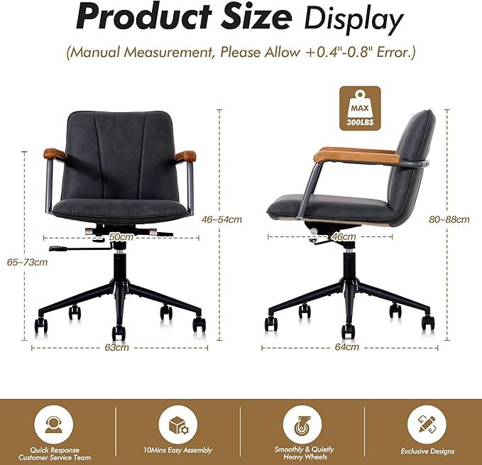 - Modern Minimalist Design: Crafted with clean lines and soft contours, this modern minimalist office chair blends seamlessly into any home or workspace. The smooth faux leather and natural wood accents bring warmth and balance to your environment.