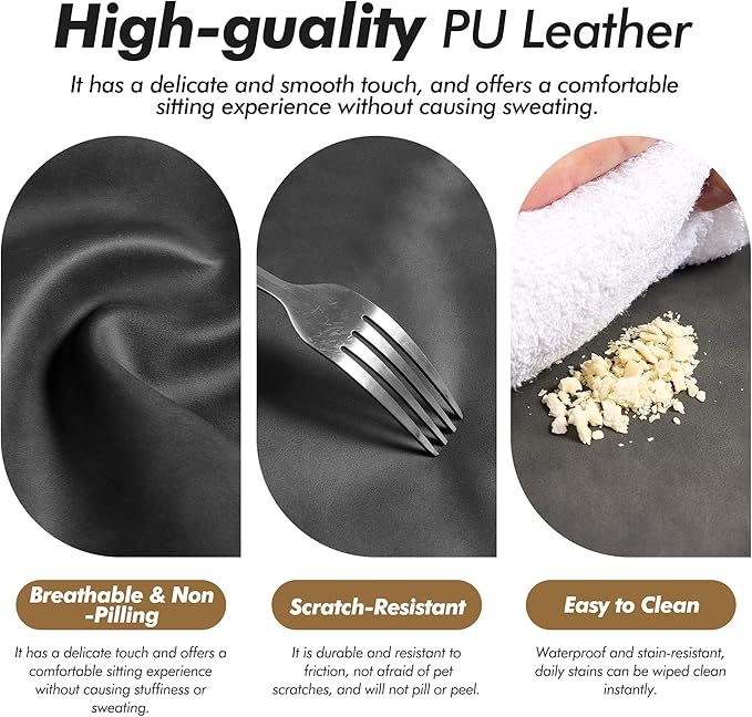 - Easy to Assemble & Maintain: Setup takes just minutes, and upkeep is effortless. The water-resistant faux leather surface wipes clean easily, keeping your chair looking fresh and elegant every day.