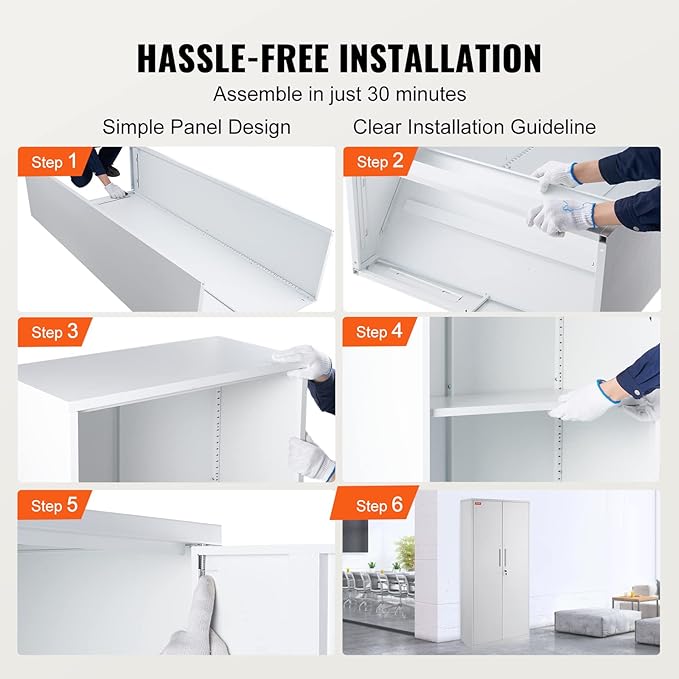 - Effortless Assembly: Our lockable storage cabinet features a simple panel design that makes installation a breeze. The included assembly instructions will guide you every step of the way, allowing you to complete the installation process in just 30 minutes. Get your organized storage space up and running in no time with our hassle-free cabinet.