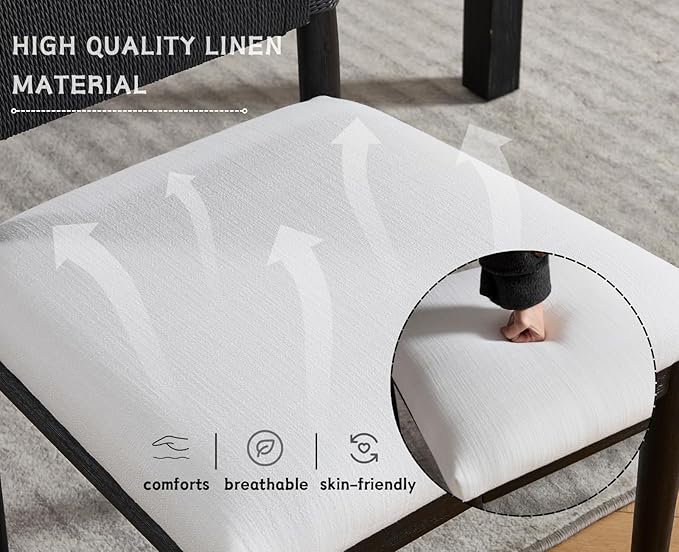 - [Comfortable and Supportive Seat]-Featuring a 3-inch thick high-density foam cushion wrapped in breathable linen fabric, this chair ensures a cozy, supportive seating experience—perfect for long dinners or casual conversations.