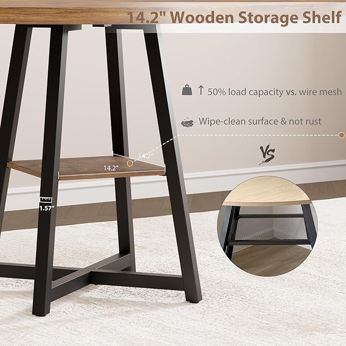 GAOMON Round Dining Table for 4-6 People, 47 Inch Brwon Dinner Room Pedestal Table with Storage Shelf, Industrial Circle Kitchen Table for Kitchen, Dining Room, Space Saving