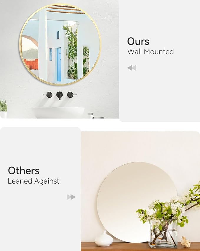 - 【Explosion-Proof & Safe】Equipped with an advanced explosion-proof membrane, this round mirror minimizes the risk of injury from accidental breakage. The durable safety layer assures peace of mind, making it perfect for family homes, bathrooms, and busy living areas.