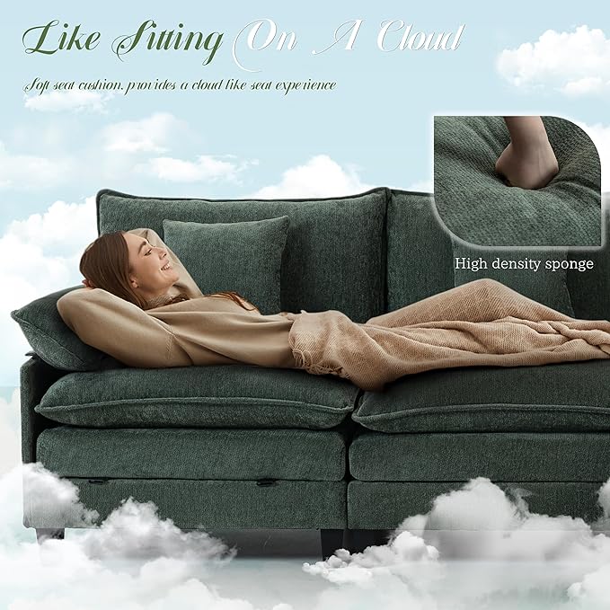 - ๐งฉ ๐๐จ๐๐ฎ๐ฅ๐๐ซ & ๐๐๐๐ ๐ญ๐จ ๐๐จ๐ฏ๐ ๐ฐ๐ข๐ญ๐ก ๐๐จ๐ฎ: This 3-seat cloud couch plus ottoman (overall size: 106โW x 54โD x 37โH) can be rearranged to fit your space and mood. Whether you want an L-shape, a chaise lounge, or separate seating zones, the modular design lets you play interior designer anytimeโno tools, no stress.