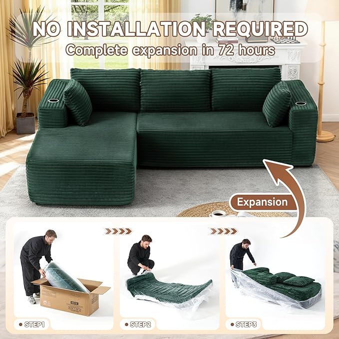 - No Assembly Required: This sofa does not require installation—simply unpack it, and it will naturally expand to its original shape within a short time. Say goodbye to the hassle of complicated assembly steps and enjoy your new sofa immediately