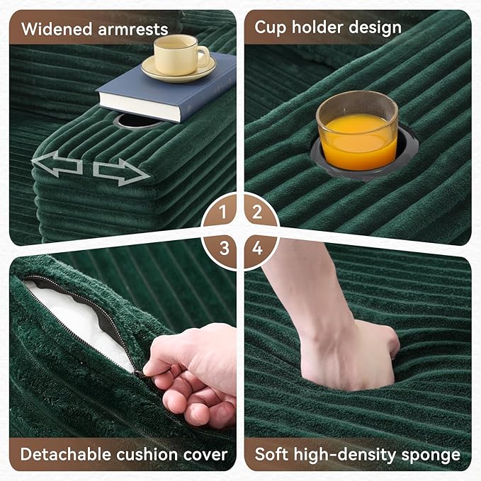 - Corduroy Fabric Couch: The sofa surface is made of high-quality corduroy fabric, which feels ultra-soft to the touch and gentle on the skin. It is also anti-pilling, ensuring long-term comfort and a healthy using experience for you and your family