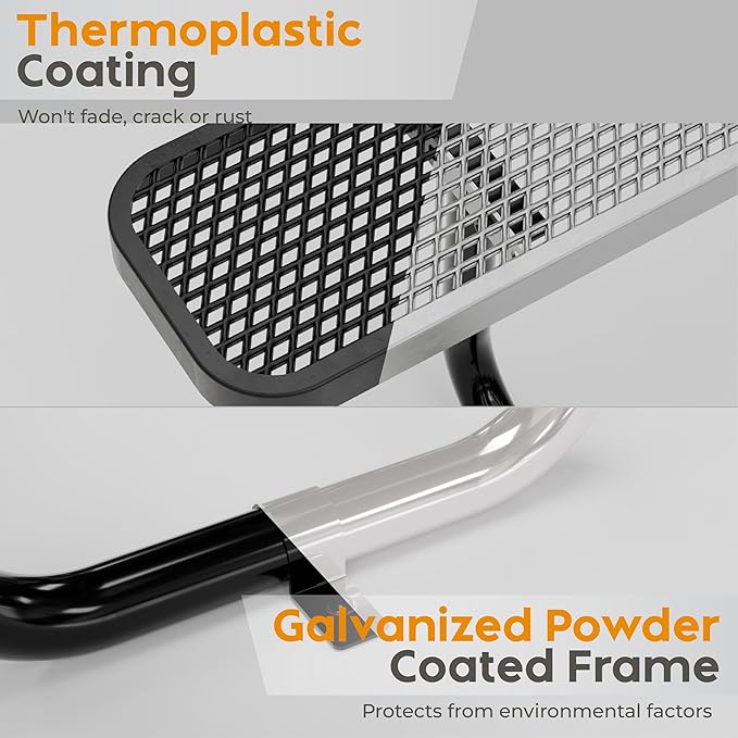 - Over-Engineered on Purpose: Frankly, we made this heavy-duty picnic table ridiculously strong. Its dense-mesh steel frame supports a combined 1,600 lbs, providing rock-solid reliability and peace of mind for any group. It delivers the reliability of a lifetime picnic table.