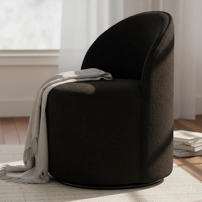 - Sleek Modern Barrel Design : This contemporary barrel chair features a smooth, rounded silhouette wrapped in soft fluffy black sherpa, adding a touch of mid-century modern elegance to your living room, bedroom, or home office.