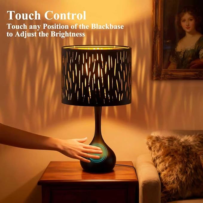 - 【Soft & Cozy Lighting Design】This touch lamps for nightstand features a black hollow fabric shade with a gold interior that softens and warms the light. Its black metal base provides a clean,modern look while delivering a steady, flicker-free glow, creating an eye-friendly and calming atmosphere for your home
