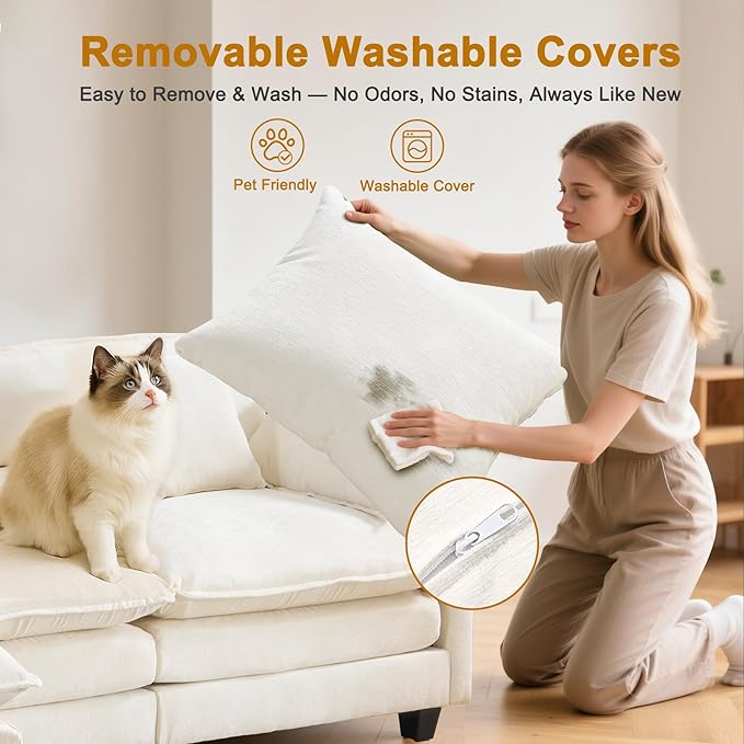 - 【Cloud-Like Comfort & Softness】The cushions of this sofa are both plush and supportive, contouring to your shape. It's constructed from luxurious chenille fabric with silky microfibers, giving it an incredibly soft feel.