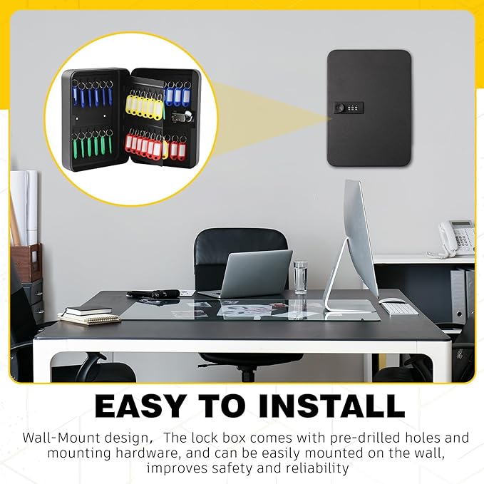 - Complete Organization Solution: with colorful key tags and hooks, ensuring each key is easily identifiable. This comprehensive locking key box set streamlines key management, eliminating the hassle of misplaced or unidentified keys