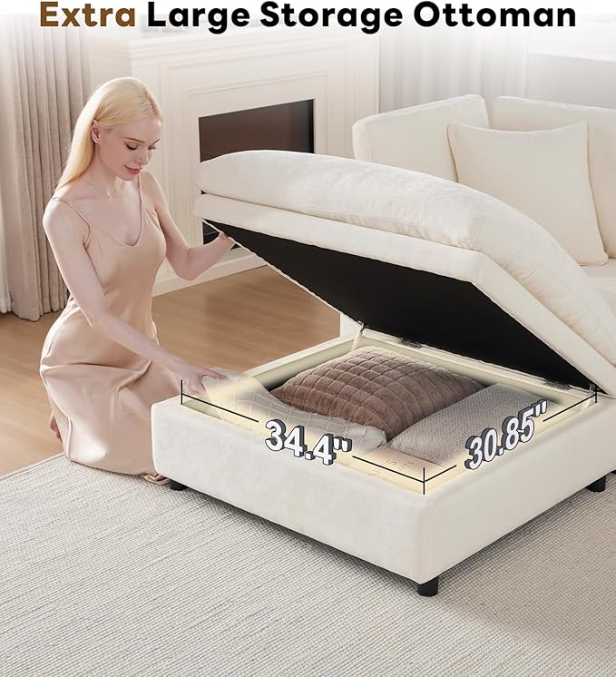 - Built-In Storage Ottoman: Keep living spaces tidy with hidden storage for blankets, toys, and more—all while blending seamlessly into the modular design