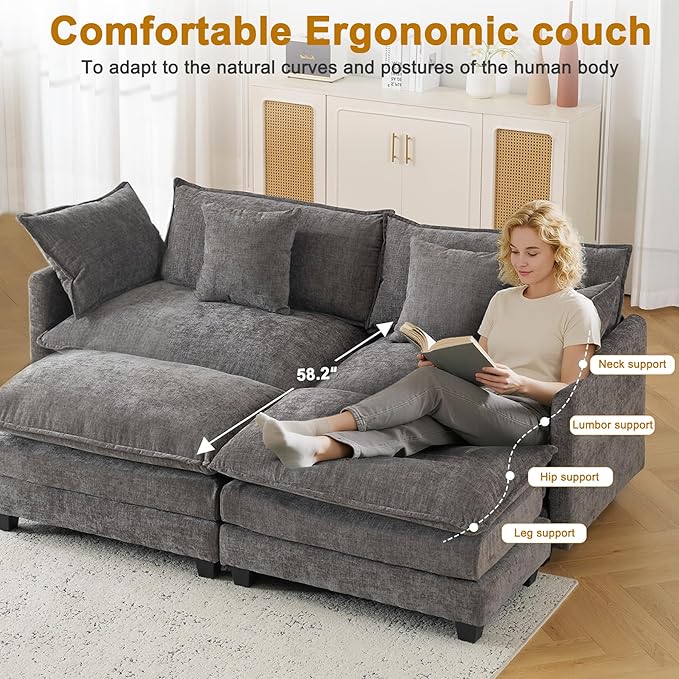 - 【Cloud-Like Comfort & Softness】The cushions of this sofa are both plush and supportive, contouring to your shape. It's constructed from luxurious chenille fabric with silky microfibers, giving it an incredibly soft feel.