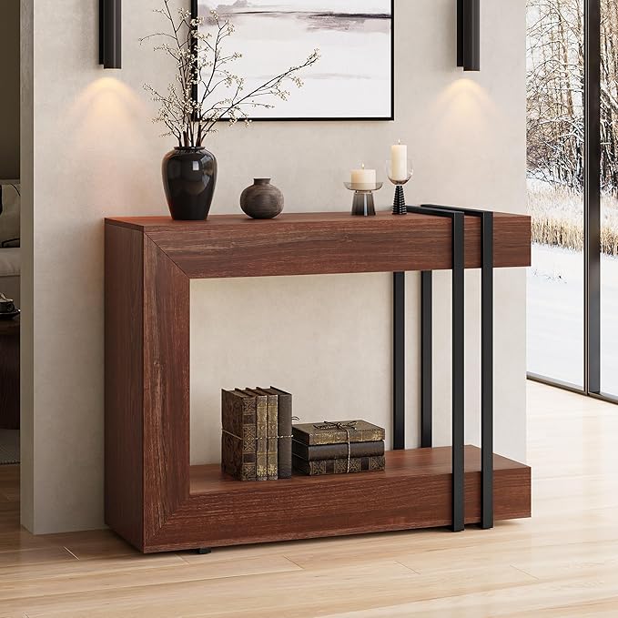 - Sturdy & Stable: Entry table crafted with robust engineered wood, featuring a scratch-resistant, waterproof top that wipes clean easily. Geometric design adds timeless style and inherent stability