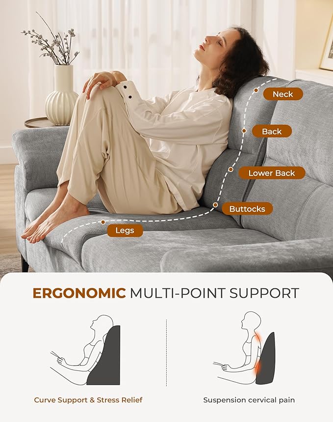- 【ERGONOMIC SUPPORT & PRESSURE RELIEF】The 26.3-inch deep seat and 7.8-inch extra-thick cushion evenly support your body, so you can sit for hours without fatigue.