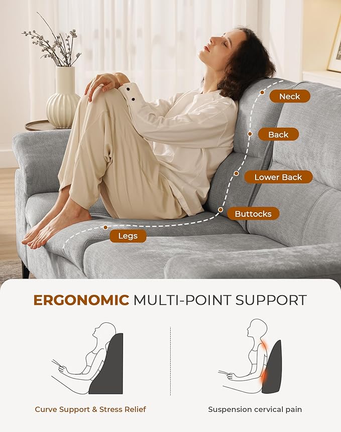 - 【ERGONOMIC SUPPORT & PRESSURE RELIEF】The 26.3-inch deep seat and 7.8-inch extra-thick cushion evenly support your body, so you can sit for hours without fatigue.