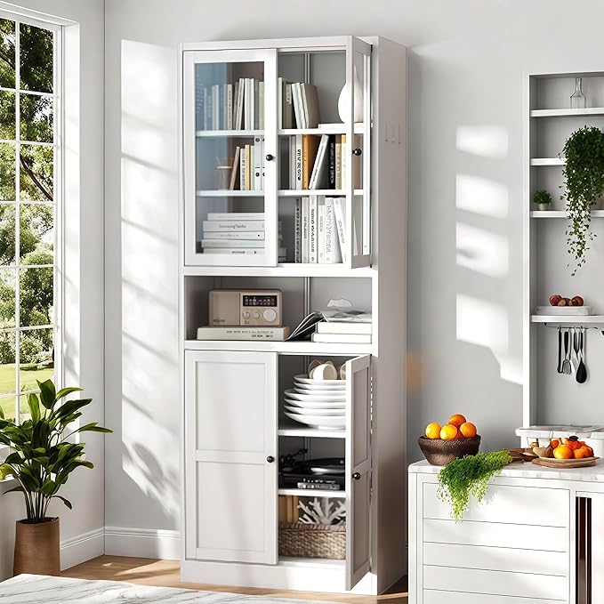 - Adjustable Shelf: Customize your storage with 4 adjustable shelves ideal for bulk groceries or kitchen appliances, this tall cabinet fits small spaces at 27.6"W×72"H