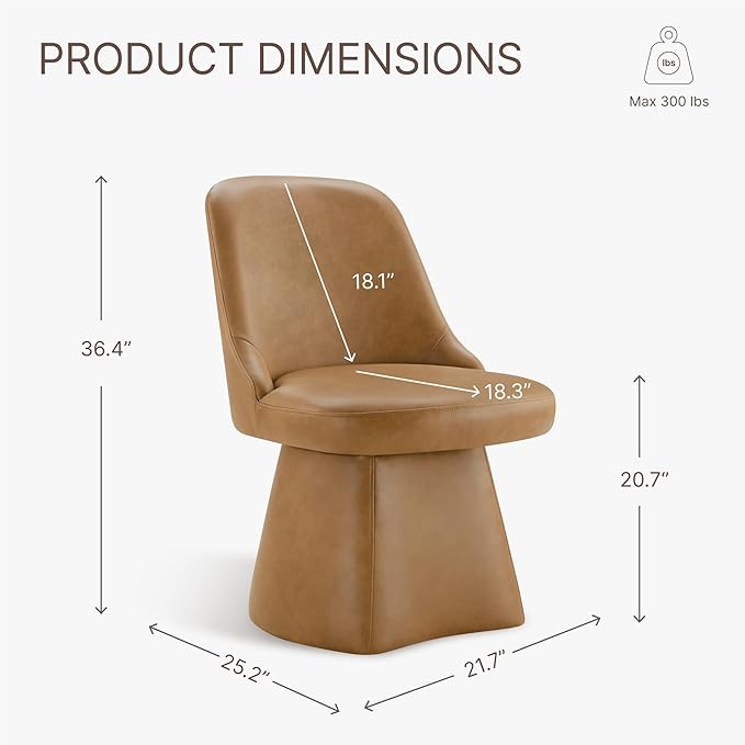 Swivel Dining Chairs Set of 1, Upholstered Mid Century Modern Deskchair with High Back, Faux Leather Kitchen Chairs for Dining Room, Bedroom, Dressing Room, Brown