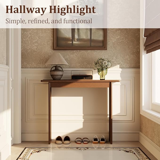 - Versatile Use: This walnut console table is ideal for holding keys, hats, vases, and more. Its slim profile makes it suitable for placement behind a sofa, under a window, or as a display for plants, scented candles, and other decorative items.