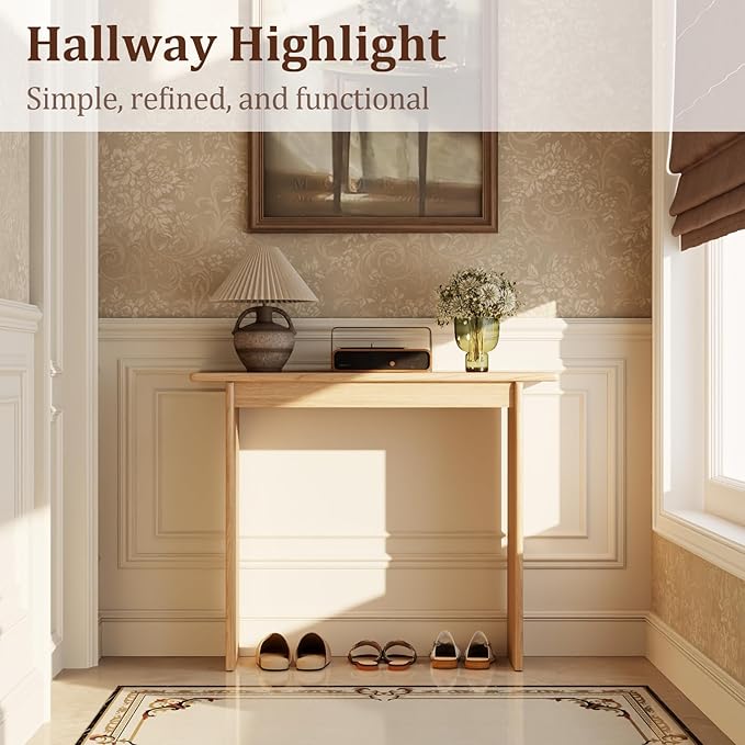 - Versatile Use: This Natrual console table is ideal for holding keys, hats, vases, and more. Its slim profile makes it suitable for placement behind a sofa, under a window, or as a display for plants, scented candles, and other decorative items.