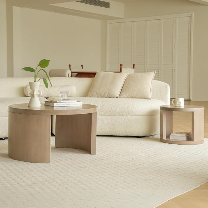 - 【Safe and Sturdy Construction】 Crafted from durable engineered wood with rounded edges and stable support, this round coffee table set is safe for homes with children or pets—perfect for daily family use.