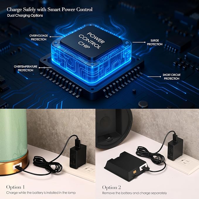 - Go Cordless, Light Up Any Space – Bring the charm of a full-size 19.5-inch table lamp anywhere — from bedside to living room — without worrying about outlets or cords. The Dune’s rechargeable design adds elegant, cable-free lighting to every corner of your home.