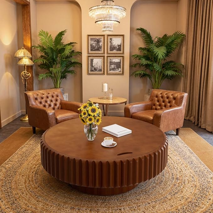 - Sturdy Center Coffee table: Made of high-quality MDF, it has excellent stability and durability. The solid wood veneer not only makes this coffee table more durable, but also can be kept as new after regular cleaning,round coffee table load capacity:table top - 200lbs, interior - 100lbs.