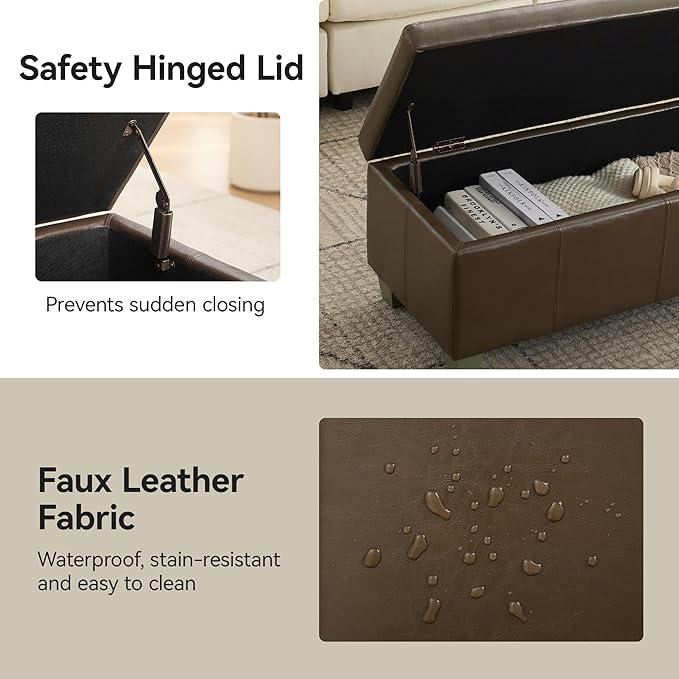- PREMIUM MATERIALS: Our storage ottoman crafted with premium faux leather and sturdy wooden leg, high elasticity sponge filling the seat cushion, which is waterproof and wear-resistant, this ottoman ensures stability, comfort, and long-lasting quality.