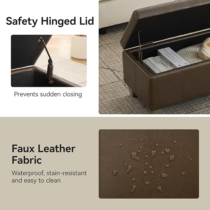 - PREMIUM MATERIALS: Our storage ottoman crafted with premium faux leather and sturdy wooden leg, high elasticity sponge filling the seat cushion, which is waterproof and wear-resistant, this ottoman ensures stability, comfort, and long-lasting quality.