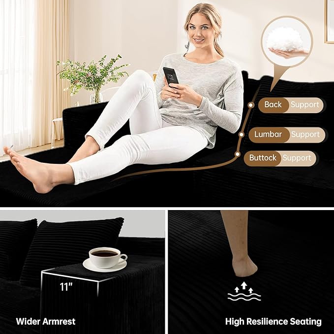 - 【Durable Comfy Fabric】Breathable fabric in black is durable and fashionable. It’s superior durability properties ensure that your sofa will maintain its fresh and shiny appearance for a long time. The unique texture and soft touch fabric provide gentle pampering no matter the season.