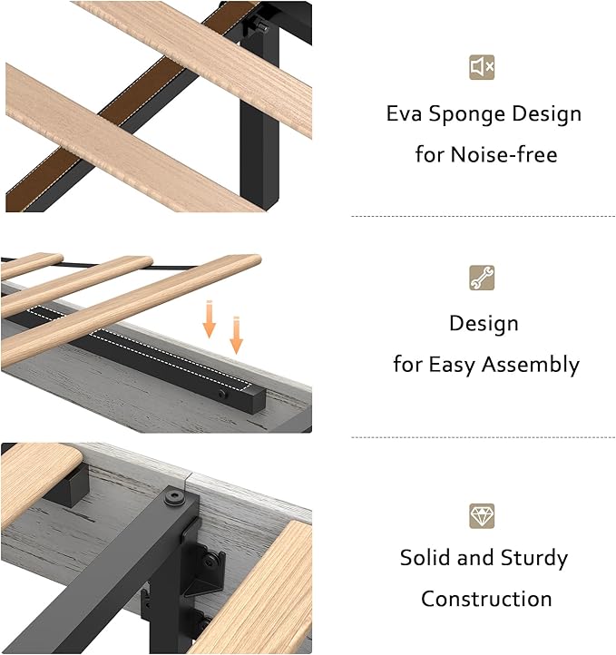 - Sturdy Construction: The queen bed of this premium platform bed is made of high-quality wood slats and MDF, which is sturdy and durable, 12 wood slats naturally blend into the sturdy frame, no need for additional spring boxes with a load-bearing capacity of up to 800 lbs. This structure ensures that the bed frame will not shake during use of the bed, providing a safe and comfortable sleeping environment for your family.