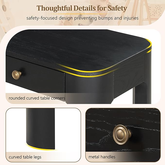 - ❤️🔥Thoughtful Details for Safety: The table features rounded curved table corners—a safety-focused design that prevents bumps and injuries, especially ideal for homes with kids or pets. These curved corners perfectly complement the curved table legs, creating a cohesive, smooth silhouette that enhances the retro charm. Paired with vintage metal handles and natural wood grain, every detail works together to elevate both the look and practicality of the table.