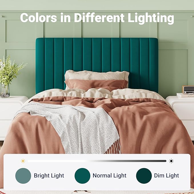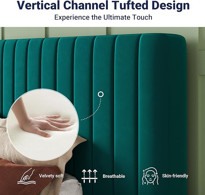 Allewie Twin Bed Frame, Velvet Upholstered Platform Bed with Adjustable Vertical Channel Tufted Headboard, Mattress Foundation with Strong Wooden Slats, Box Spring Optional, Easy Assembly, Teal