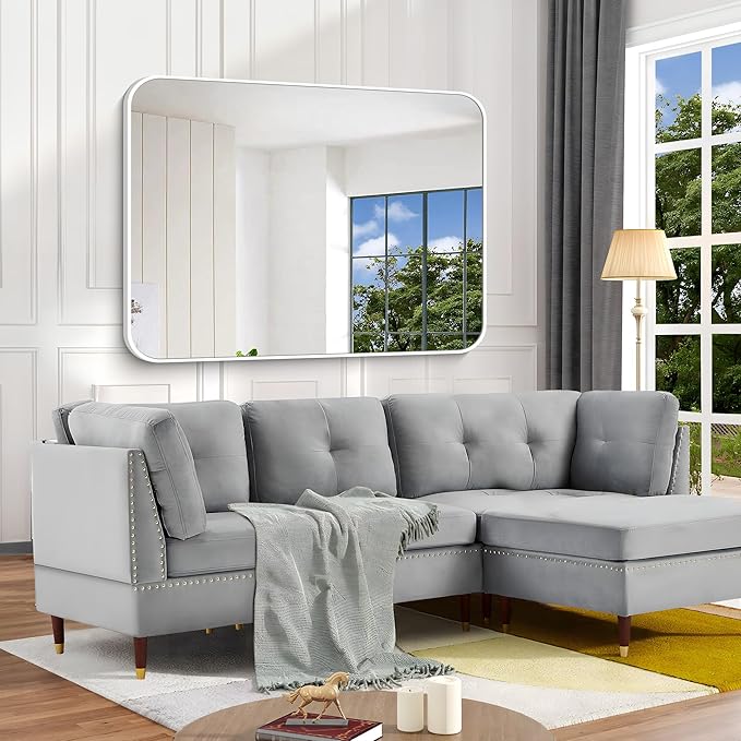 - ROUNDED CORNER DESIGN :The 36x48 inches mirror features an elegant rounded corner design and measures 36" x 48" Its unique shape adds a touch of sophistication and upscale beauty to your home.