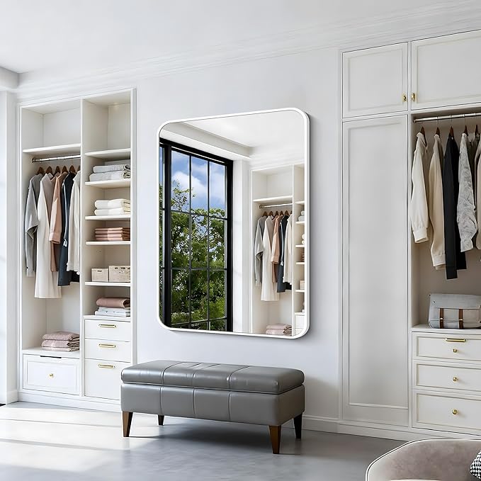 - CLEAR REFLECTION & NO DISTORTION : White bathroom mirrors for wall utilizes a four-layer floating technology to provide a high-definition reflection, presenting a clear visual effect without any distortion or bloating.