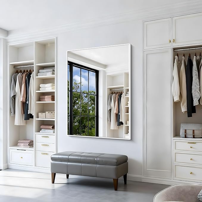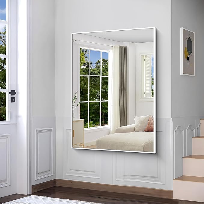 - CLEAR REFLECTION & NO DISTORTION : White bathroom mirrors for wall utilizes a four-layer floating technology to provide a high-definition reflection, presenting a clear visual effect without any distortion or bloating.