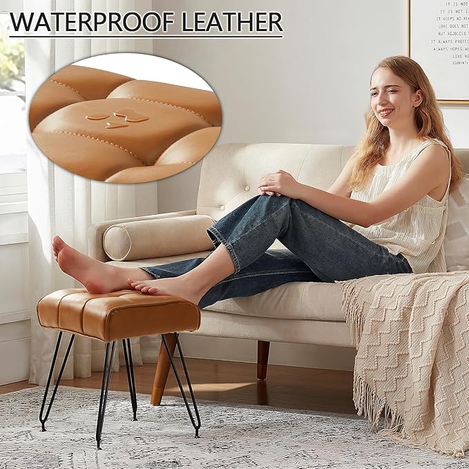 - 【LEATHER VANITY STOOL】: Rectangular ottoman foot stool with sponge cushion padded seat and metal legs provide comfort and sturdy support, which give you an excellent use. The PU material is easy to maintain, simply wipe gently with a soft wet towel to clean the stains.