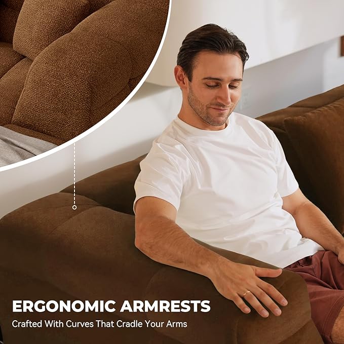 - Skin-Friendly Fabric & Simple Care for This Sofa—Crafted with premium chenille, it offers an incredibly gentle, smooth touch, ideal for long lounging (curled up with a book or resting). The skin-soft material feels cozy without irritation, making every cloud couch moment a comfort. Great for daily use, but avoid liquid spills (may leave marks); use professional fabric cleaner for accidents to keep it fresh