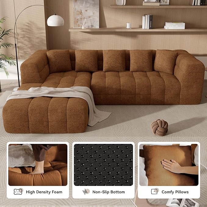 - Cloud-Like Comfort - Sink into plush comfort with this cloud couch. Its high-density foam stays soft but never sags, for long-lasting support. Ideal for post-work unwinding, binge-watching, or lazy Sundays—plus the left chaise lets you stretch out fully, enjoying rebound-optimized coziness