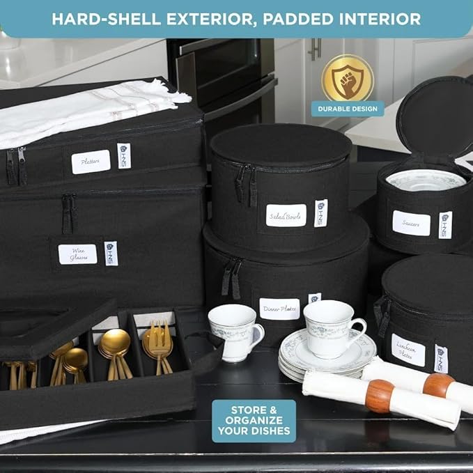 - HARD SHELL CHINA STORAGE CONTAINERS: Durable containers with hard shell construction provide long-lasting protection for delicate dinnerware during moves or storage, ensuring your valuable items remain intact.