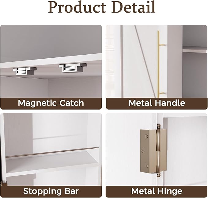 - Versatile for Any Room: The clean white finish and classic design blend easily with farmhouse, modern, or minimalist décor. Ideal for use as a kitchen pantry, entryway storage, or display cabinet